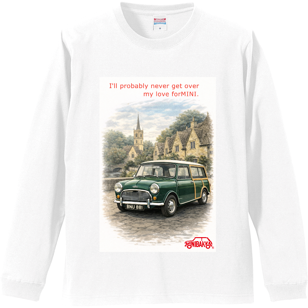 MINIBAKKAリブ付ロングスリーブTシャツ ローバーミニ トラベラー 英語版「I'll probably never get over my love for MINI.」